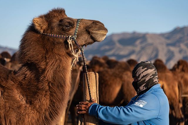 Ce circuit peut être réalisé de mai à octobre, avec des températures plus élevées en juillet et août. Pour les personnes sensibles à la chaleur, nous conseillons de partir en mai/juin ou septembre/octobre, notamment dans le désert de Gobi. Ces mois de l’année ont de nombreux atouts. En mai/juin, la nature s’éveille après les longs mois d’hivers : les paysages reverdissent, la floraison commence, les animaux mettent bas et c’est l’occasion de voir les agneaux, poulains et jeunes yaks. Les chameaux portent leur robe d’hiver et sont bien plus majestueux ainsi ! C’est aussi en mai, juin, septembre et octobre que l’on profite souvent de lumières extraordinaires. Le climat changeant renforce l’extraordinaire sensation de retour à la nature, que l’on recherche lors d’un voyage en Mongolie. Quant aux rencontres, les nomades sont souvent très actifs durant l’été, occupés par leurs tâches quotidiennes, et sont donc plus disponibles en mi-saison.