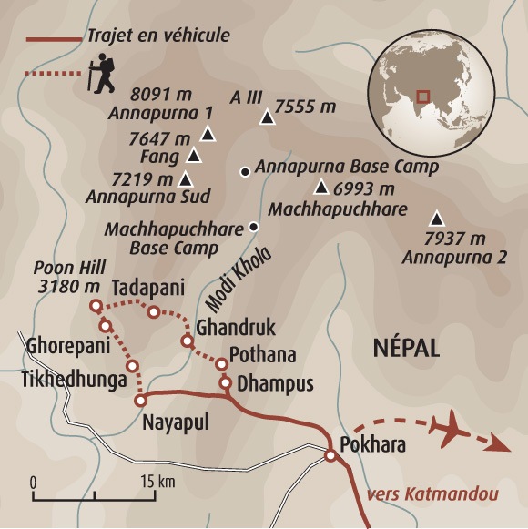 Au plein cœur de l'Himalaya, au pied du majestueux massif des Annapurnas, ce trekking vous mène de village en village à travers rizières en terrasses, hauts pâturages et forêts de rhododendrons. Depuis les crêtes, les vues sur le versant sud des Annapurnas et le Machapuchare sont absolument splendides. Cette randonnée se déroule à une altitude raisonnable, ce qui en fait un choix parfait pour une première approche du Népal.