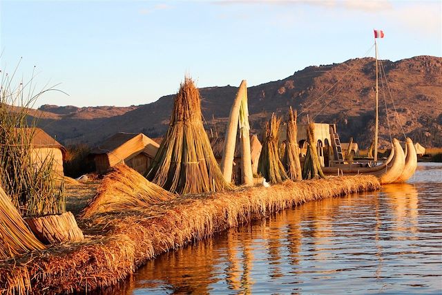 Départ en bateau pour l’île d'Amantani. Au passage, visite des îles flottantes Uros (3812m), où les habitants de la communauté aymaras construisent leurs habitations sur de gigantesques structures en roseaux flottants (totoras) amarrés à des piquets, leur évitant ainsi de dériver. Moment d'échange avec les habitants qui vivent de la pêche, de l'artisanat et de la chasse.