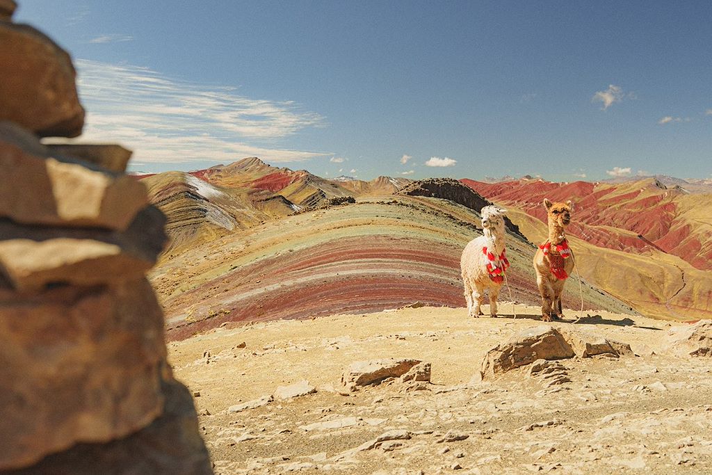 Au sud-ouest de Cusco, la cordillère de Vilcanota se dresse en ultime barrière entre l’empire inca et les grandes forêts amazoniennes. L’Ausangate, omniprésent du haut de ses 6372m, est l'indubitable seigneur du massif : nous le contournons en passant au pied de sa magnifique face sud. Nous entamons la traversée de l'énorme massif composé du Pico Tres (6093m) et du Chumpe (6106m). Au bout, le site de Vinicunca et son arc-en-ciel de roches colorées apparaissent, comme une récompense à tous nos efforts. Afin de nous acclimater au mieux avant ce superbe trek, nous visitons des sites incas : le Machu Picchu bien sûr, mais pas que ! Nous terminons ce superbe voyage par la découverte du lac Titicaca, en logeant chez l'habitant, afin de favoriser les rencontres et le partage qui font le sel d'un voyage.
