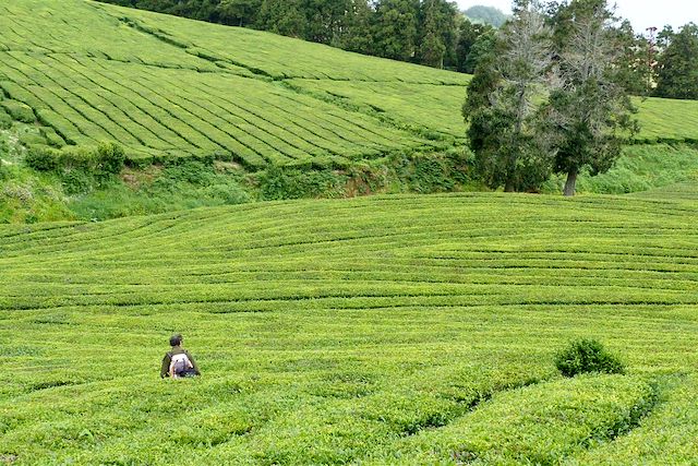 Nous continuons à pied par une route de campagne jusqu’aux plantations de thé. Unique en Europe, ces plantations perdues au milieu de l’Atlantiques sont étonnantes. On continue ici à cultiver, ramasser et fabriquer le thé selon les méthodes ancestrales. Après la découverte de la fabrique familiale, une dégustation de thé sera la bienvenue !