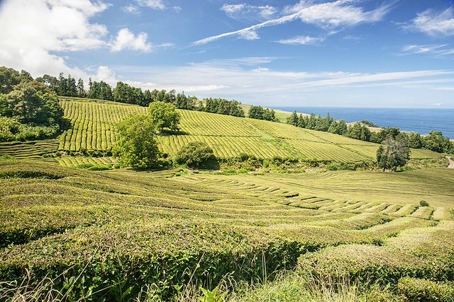 Après le pique-nique sur la plage, nous continuons à pied par une route de campagne jusqu’aux plantations de thé. Uniques en Europe, ces plantations perdues au milieu de l’Atlantique sont étonnantes. On continue ici à cultiver, ramasser et élaborer le thé selon les méthodes ancestrales. Après la découverte de la fabrique familiale, une dégustation de thé sera la bienvenue ! Retour à Furnas.