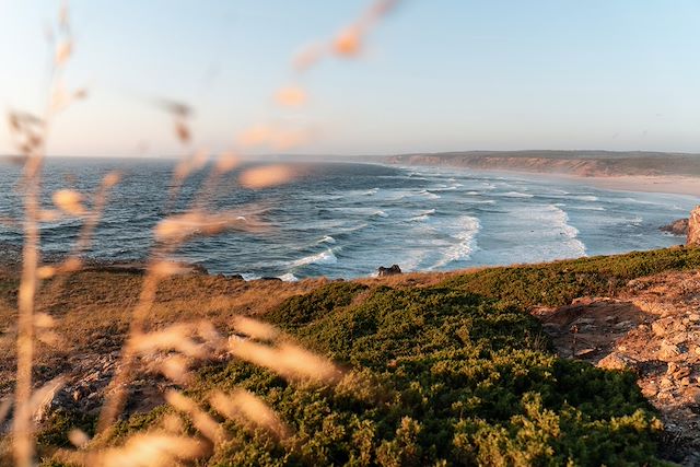 Randonnée dans le parc naturel de la côte vicentine, dans le vallon de Carrapateira puis dans les collines couvertes de cistes, de pins et de romarin, avant de rejoindre le littoral sauvage, ses plages et ses falaises ocre ; l’Atlantique dans toute sa splendeur. Carrapateira, petit village de pêcheurs et de surfeurs, mérite une halte et une visite éventuelle de son musée de la Terre et de la Mer.