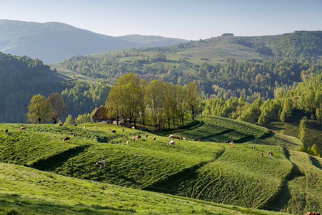 Randonnée matinale d'une citadelle à l'autre dans la région de Viscri. Transfert à Sibiu, capitale culturelle des Saxons de Transylvanie, et balade à pied dans le centre-ville. Court transfert dans l'un des villages de bergers des environs et installation pour deux nuits. Dîner et nuit en chambres d'hôtes.