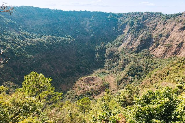 Magnifique randonnée sur le volcan Ilamatepec (2382m), qui offre de jolies vues sur son voisin l'Izalco et sur un lac de soufre. Le sentier passe d'abord dans une forêt ombragée, avant de se découvrir sur les pentes du volcan. Après cette bonne balade, nous mettons le cap sur les thermes de Santa Teresa : bains purifiants, sauna naturel, piscines et soin d'argile sont au programme. Déjeuner sur place. Après ce moment détente, nous roulons sur la route des fleurs en direction du village de Juayua, où nous prenons nos quartiers dans un hôtel avec vue sur les volcans.