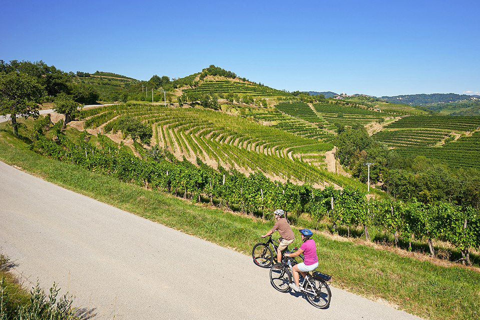 charmants villages, elle est souvent comparée à la Toscane pour ses paysages ainsi que pour la production de vins de haute qualité, notamment le rebula, un vin blanc traditionnel de Slovénie. Prenez le temps de visiter les villages pittoresques de Šmartno et Dobrovo, qui abritent des bâtiments historiques, des églises et des galeries d'art avant de monter à la tour de Gonjace, d'où vous aurez une vue panoramique sur les Alpes juliennes et la mer Adriatique, une halte de choix pour le pique-nique.