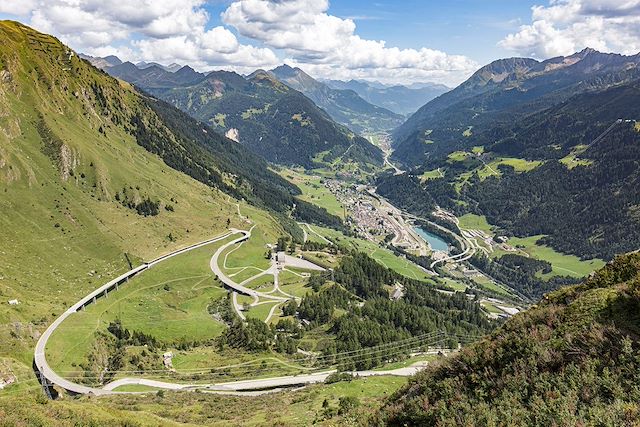 Cette étape vous conduit à travers le paysage sauvage du col de l’Oberalp. Sur le chemin, vous apercevez le viaduc de Bugnei, long de 120 mètres, où passe le Glacier Express. L’ascension du col qui culmine à 2 044 mètres d’altitude, vous fait quitter le canton des Grisons pour le canton d’Uri. Au sommet, vous croisez le seul phare des Alpes, tout droit venu de Rotterdam. Au cœur des cols alpins, la jolie ville d’Andermatt mais aussi station de sports d’hiver vous attend.
