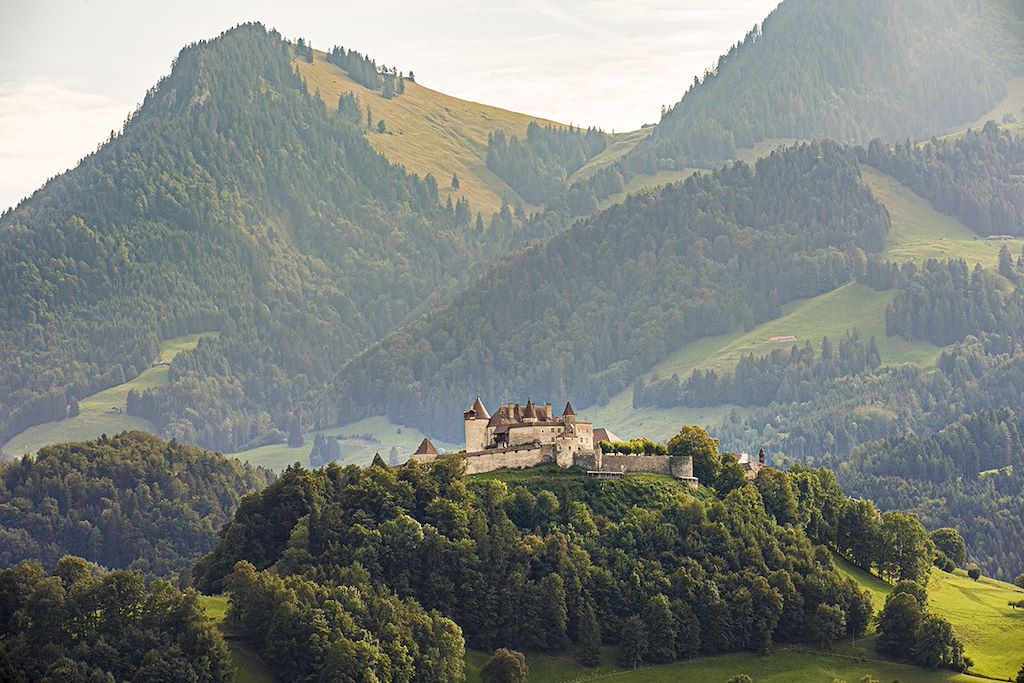Premier temps fort de cette randonnée : le lac Noir et ses eaux sombres. La légende dit qu’il tient sa couleur d’un géant qui y aurait lavé ses pieds. Vous continuez à travers les gorges sauvages de la Jogne vers la commune de Gruyères surplombée par un château à quatre tours. Vous passez quelques fromageries d'alpage tout en grimpant au Moléson puis rejoignez la station de sports d'hiver des Paccots par des prairies verdoyantes. Une randonnée le long de ses rives à travers les vignobles du Lavaux achève ce voyage.