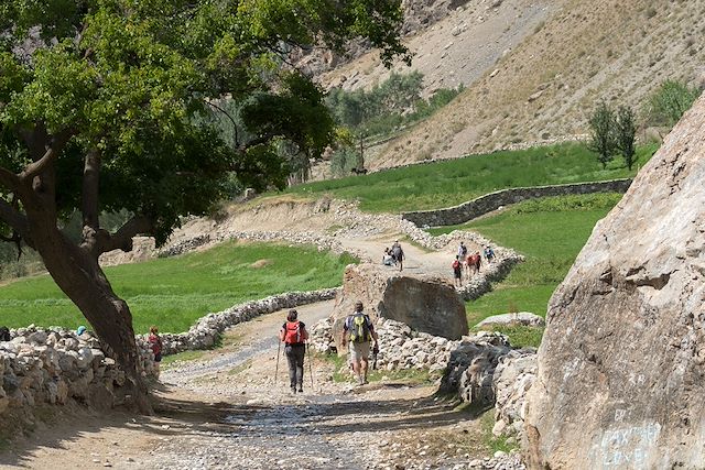 Lors du trekking, le guide francophone est assisté d’un accompagnateur de montagne tadjik non francophone. Des cuisiniers et des muletiers se joignent au groupe.