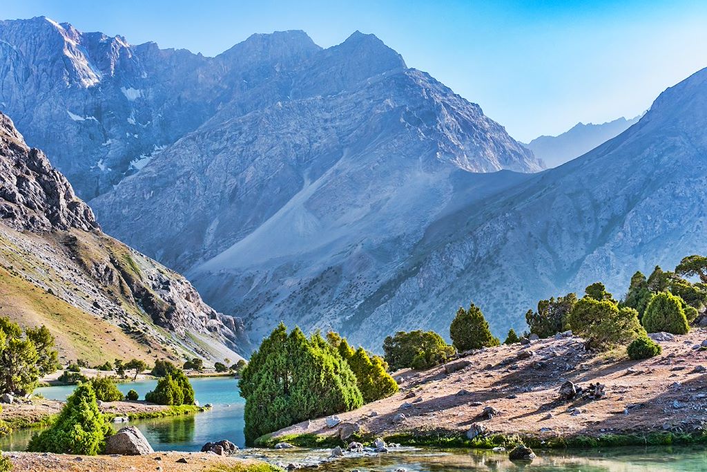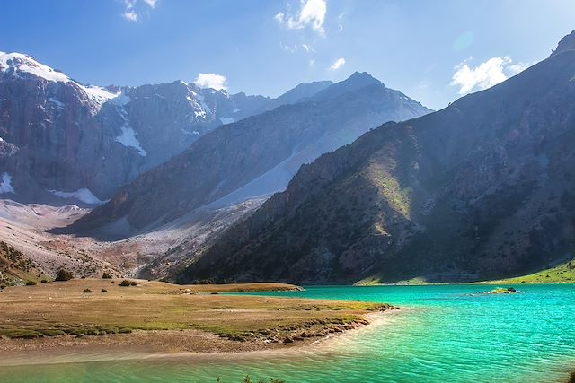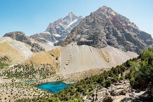 Ce voyage démarre par un trekking au pied du Pamir, dans les monts Fanskye, massif formé de sommets élancés culminant à plus de 5000m, où nous rencontrerons quelques camps tadjiks au bord de lacs magnifiques aux eaux turquoise.