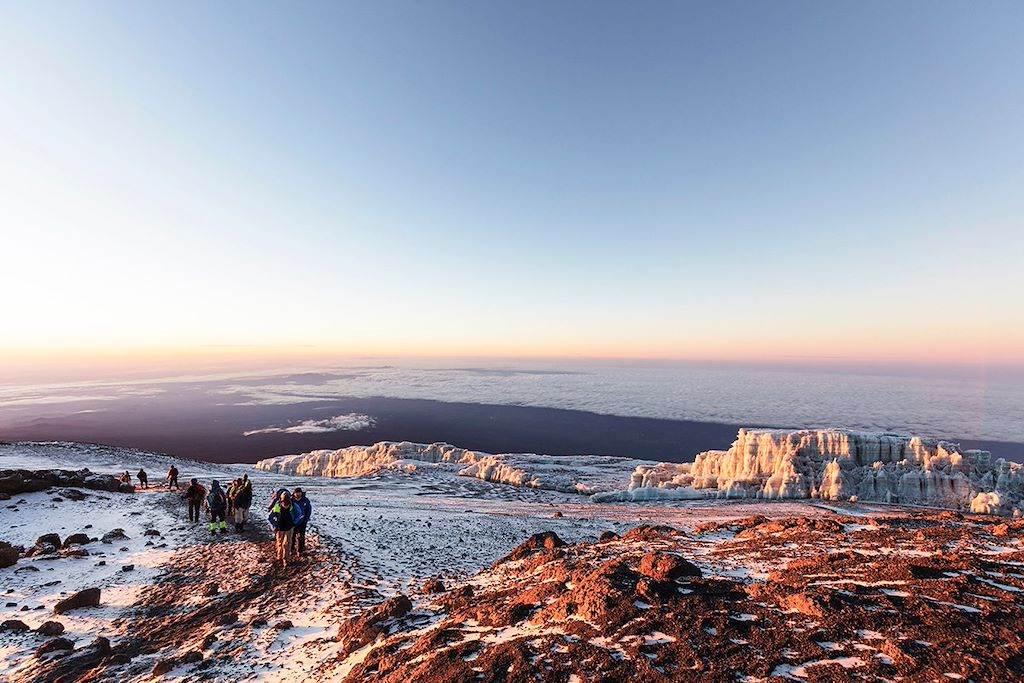 Nous avons atteint le plus haut sommet isolé, qui est aussi le toit de l'Afrique. Cette aventure physique et surtout humaine a été possible avec les conseils de l'équipe de Terre d'Aventure lors de la préparation, et surtout grâce à la formidable équipe de guides et de porteurs. Leurs conseils, leurs attentions, leurs générosité ont été une des clés de la réussite. Nous étions 6 pour cette aventure et les 6 ont atteint le sommet , 100% de réussite. Merci.