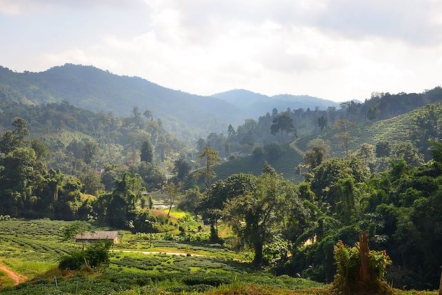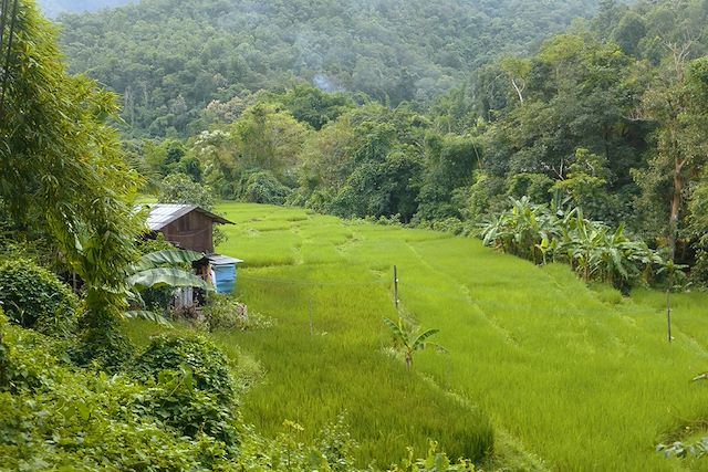 Début de notre trek à travers villages, rizières et forêts tropicales. Nous partons en camion local pour rejoindre un village Karen, point de départ de la randonnée. Nous marchons à travers la forêt en suivant la crête de la montagne (montée progressive). Nous marquons une pause pour un déjeuner pique-nique avant de poursuivre l'ascension jusqu'à un sommet qui offre une vue imprenable sur la vallée environnante. Nous pourrons peut être croiser les habitants des villages Karen alentours jusqu'à notre arrivée au village de Ban Huay Hee, notre étape du soir, où nous dormons chez l'habitant. Temps libre pour explorer le village ou aider nos hôtes à la préparation du dîner.