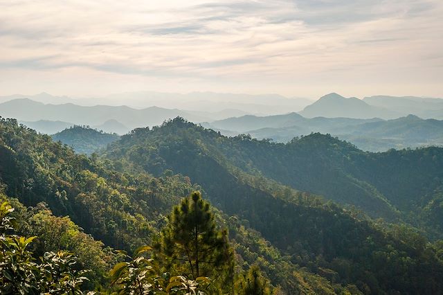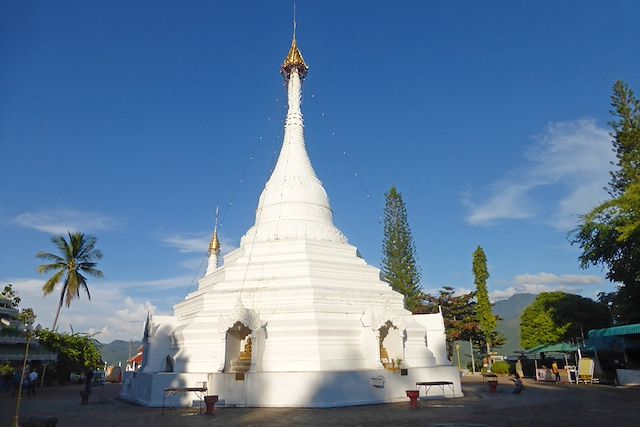 Départ en direction de l'une des provinces les plus montagneuses de Thaïlande, couverte de forêts denses, des vallées et de rivières. La région de Mae Hong Son sera notre terrain de randonnées pour les trois prochains jours. Réputée pour ses paysages verdoyants, la province est peuplée de plusieurs minorités ethniques dont les Karen, les Shan, les Hmong et les Lahu, qui conservent encore certaines coutumes traditionnelles et marquent la région de nombreuses influences et d'un mélange de cultures. Arrivés à Mae Hong Son, nous pourrons visiter le temple Wat Phra That Doi Kong Mu, qui se dresse au sommet d'une colline, visible de n'importe quel point de la bourgade.