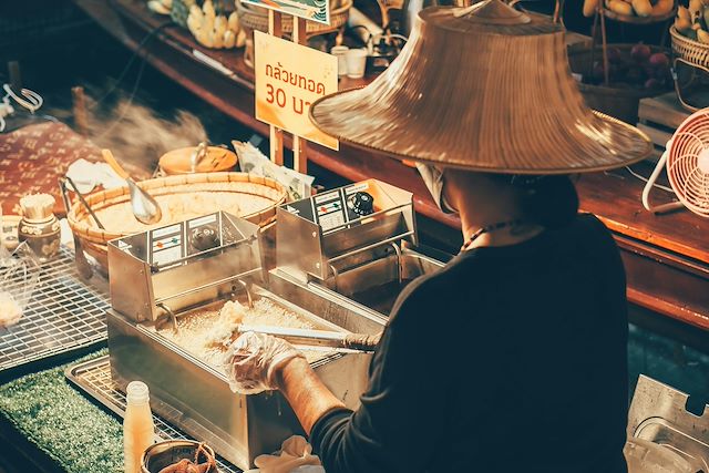 Au cours du voyage, tous les repas sont inclus sauf certains à Chiang Mai (en fonction de l'horaire d'arrivée du vol international) et lors du séjour balnéaire à Koh Samet (se reporter à la rubrique "le prix ne comprend pas"). Quelques pique-niques sont prévus (dans le train entre Chiang Mai et Ayutthaya, et lors de nos randonnées et/ou certaines activités). Lors des nuits chez l'habitant, les repas sont préparés par les familles qui nous accueillent, avec des produits frais et locaux. La cuisine de rue a également été rendue célèbre depuis plusieurs années. A Bangkok, une balade est prévue pendant ce voyage, avec pour fil rouge la cuisine de rue et ses différents étals disséminés dans le quartier chinois. A Chiang Mai, nous pourrons également tester la cuisine de rue et plusieurs plats traditionnels. Nos arrêts dans les marchés seront également l'occasion de découvrir de nombreux fruits, légumes, condiments ...