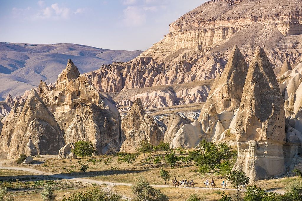 Au cœur de l’Anatolie, la Cappadoce révèle un paysage volcanique façonné par le temps et l’érosion. Idéal pour ceux qui aiment mêler randonnée et découverte culturelle, ce décor surprend par ses falaises sculptées et ses habitats troglodytiques. Nous parcourons des sentiers bordés de pics et de pénitents, et d’anciennes églises rupestres apparaissent discrètement dans la pierre. Les couleurs se succèdent du rouge à l’ocre, du blanc au vert, et chaque vallée raconte l’ingéniosité des habitants qui ont façonné leurs maisons en parfaite harmonie avec ce relief vivant.