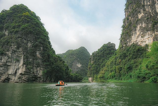 Ce voyage de randonnée nous entraîne dans les montagnes et vallées secrètes du Tonkin, sur un itinéraire original mêlant sites incontournables et étapes exclusives, loin des foules. Dans les hauts plateaux de Moc Chau et Pa Co, nous marchons à travers rizières en terrasses, forêts luxuriantes et pitons karstiques à la rencontre des ethnies. Chaque étape s’ouvre sur la vie locale : nuits chez l’habitant, repas partagés et sourires échangés rythment la marche. Le voyage se poursuit à Tam Coc, où les barques glissent entre les reliefs calcaires, avant de s’achever sur les eaux émeraude de la mythique baie d’Halong. Fruit de nos repérages et de nos liens avec les habitants, cet itinéraire hors des sentiers battus célèbre la beauté brute et la chaleur humaine d’un Vietnam authentique et vivant.